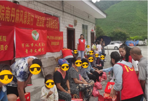为了解麻风病患者愈后康复和生活情况,提高群众对麻风病防治知识的认知,消除对麻风病患者的歧视与偏见,9月1日,河池市人民医院重症医学科党支部和药学部党支部到南丹县八圩瑶族乡麻风康复村开展以“全面消除麻风危害,促进社会文明进步”为主题的送温暖志愿服务活动。