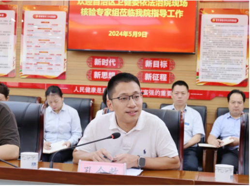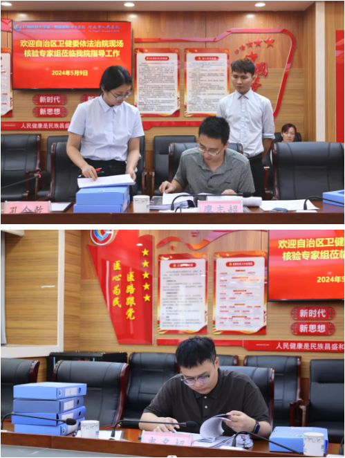 5月9日上午,自治区疾控局综合监督处副处长孔令乾一行3人到河池市人民医院开展全面依法治院工作现场核验。河池市人民医院领导班子和相关职能部门负责人陪同核验。