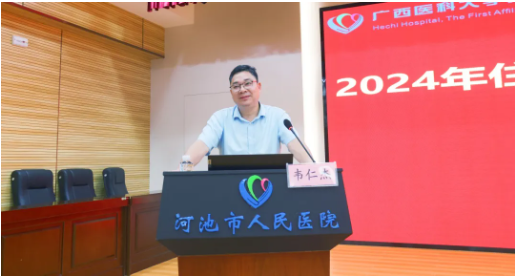2024年4月23日,河池市人民医院在教学综合楼5楼学术报告厅举行2024年住培结业考核动员暨经验交流会。医院副院长韦仁杰、培训专业基地和各亚专业科室管理人员、住培指导医师、2020级优秀住培医师代表及2024年结业的全体住培医师等400余人参加会议,会议由科教科科长黄客增主持。