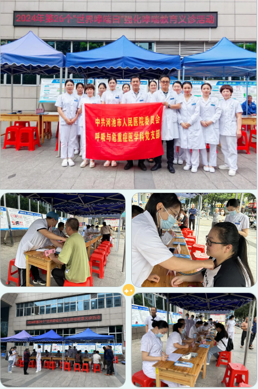 2024年5月7日,将迎来第26个“世界哮喘日”,今年世界哮喘日的主题为“强化哮喘教育”。当天,河池市人民医院呼吸与危重症医学科在门诊综合楼前开展2024年“世界哮喘日”活动周义诊活动。