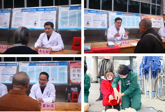 3月5日,医院在门诊综合楼前,开展“文明实践,我是行动者”义诊志愿服务活动。医疗专家立足专业,通过问诊及初步检查,提出了针对性的治疗方案和推荐,细致地为每位前来就诊的患者“把脉开方”。参加义诊的还有资深护理专家,她们热情地为患者测量血压、血糖,讲解护理知识,进行心肺复苏、海姆立克急救法等急救技能示教,吸引了许多群众学习参与。