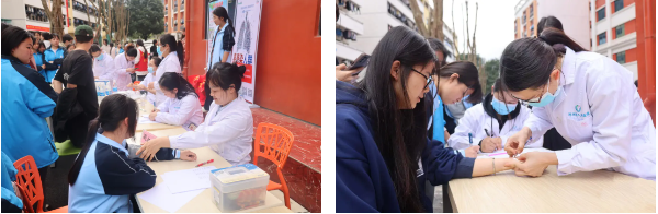 活动现场,义诊专家从结核病传染源、传播途径、易感人群和防治等方面给学生们科普结核病防治相关知识,提高学生对结核病的危害和防治重要性的认识。此外,活动还以体格诊查、知识问答、发放宣传读本、免费测量血压和结核菌素皮肤筛查(PPD试验)等多种形式展开。活动现场反响热烈,学习气氛浓厚。
