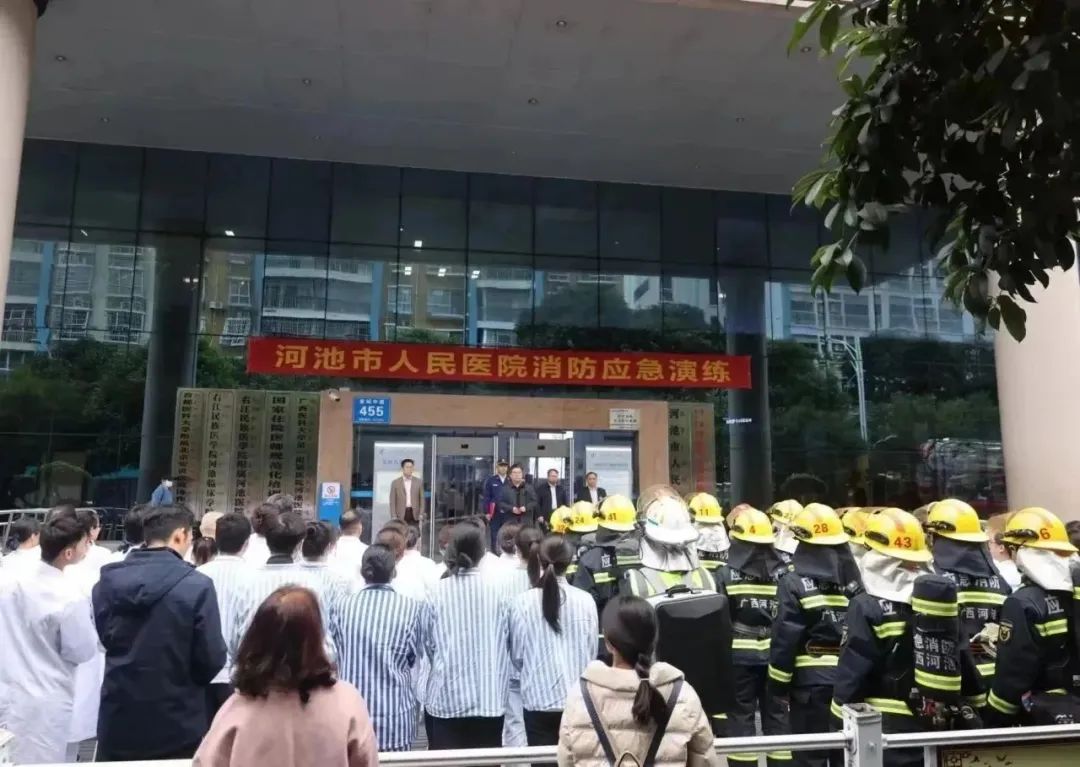 12月12日,河池市人民医院在金城江区消防救援大队指导下开展消防应急演练,院领导班子、全院中层干部、科室消防安全生产管理员等参加并观摩演练,演练由医院副院长余乐周主持。本次消防应急演练旨在加强医院消防安全工作,提高医护人员的应变能力,保障患者及职工人身、财产安全。