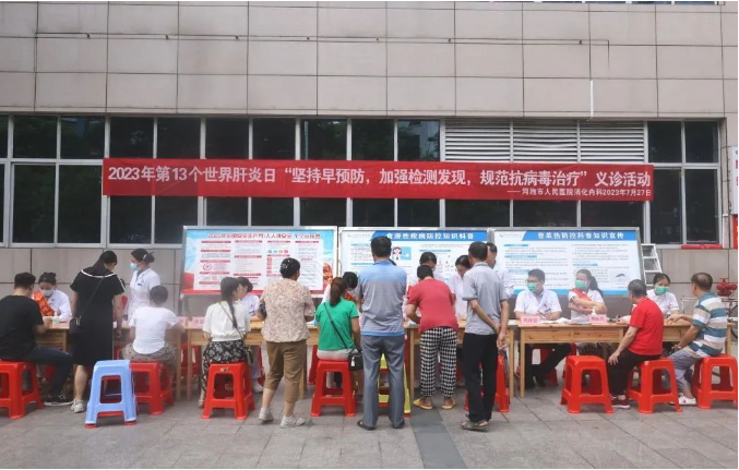 2023年7月28日是第13个“世界肝炎日”,今年的宣传主题是“坚持早预防,加强检测发现,规范抗病毒治疗”。7月27日上午,河池市人民医院消化内科在门诊综合楼前举行义诊活动,提升群众的健康水平。