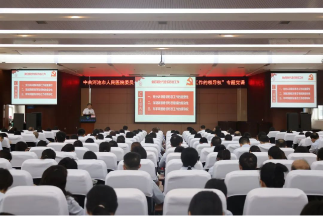 8月31日下午,河池市人民医院在门诊综合楼23楼会议室举办2023年“牢牢把握意识形态工作的领导权”专题党课,邀请中共河池市委党校一级调研员覃克参进行专题授课。会议由医院党委书记韦义甜主持。河池市人民医院领导班子、全院中层干部、全体党员等参加会议。