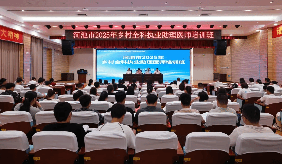 2025年6月3日,由河池市卫生健康委员会主办、河池市人民医院承办的“2025年乡村全科执业助理医师培训班”开班仪式在河池市人民医院学术报告厅举行。河池市卫生健康委员会副主任、市中医药管理局局长欧乃坚、河池市人民医院党委副书记、院长唐秀革等领导出席开班仪式。来自全市各县区的114名乡村医疗骨干参加培训,会议由河池市人民医院副院长蒙如庆主持。