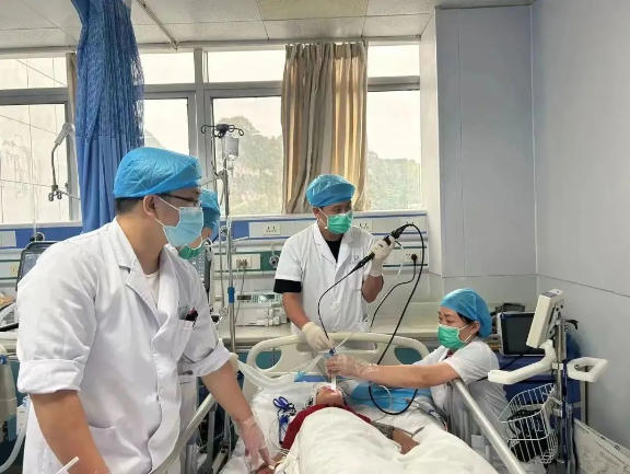“快!患儿已经出现严重呼吸困难,需要立即取出异物!”呼吸与危重症医学科立即启动气道异物应急处置预案,韦庆带领团队完善各项气管镜前准备工作和抢救预案,做好救治准备。