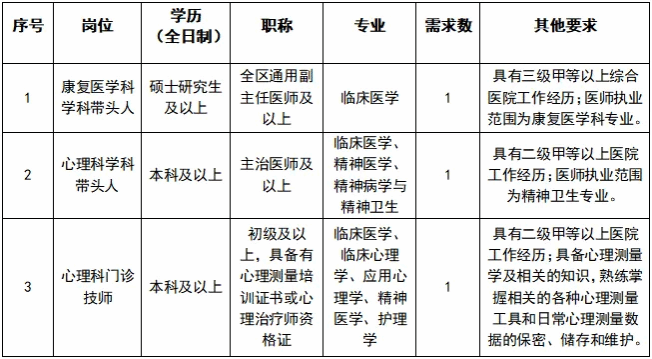 4.须具有与岗位相对应的学历、职称及其他要求;