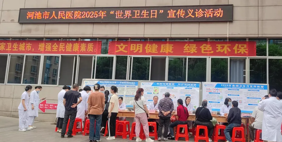 2025年4月7日是世界卫生日,今年主题是“保障母婴健康 呵护祖国未来”。为进一步强化母婴健康保障工作,4月11日,广西医科大学第一附属医院河池医院·河池市人民医院预防保健科组织各科室在总院门诊大楼前开展“保障母婴健康 呵护祖国未来”义诊活动。本次活动通过多学科专家联合义诊、健康科普宣教及免费发放中药香囊等形式,为广大群众提供专业的医疗咨询服务,普及母婴保健知识,切实提升妇女儿童健康水平。