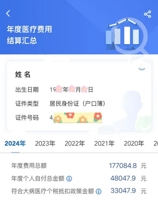 3.年度个人自费金额超1.5万元,即可截图保存作为扣除依据
