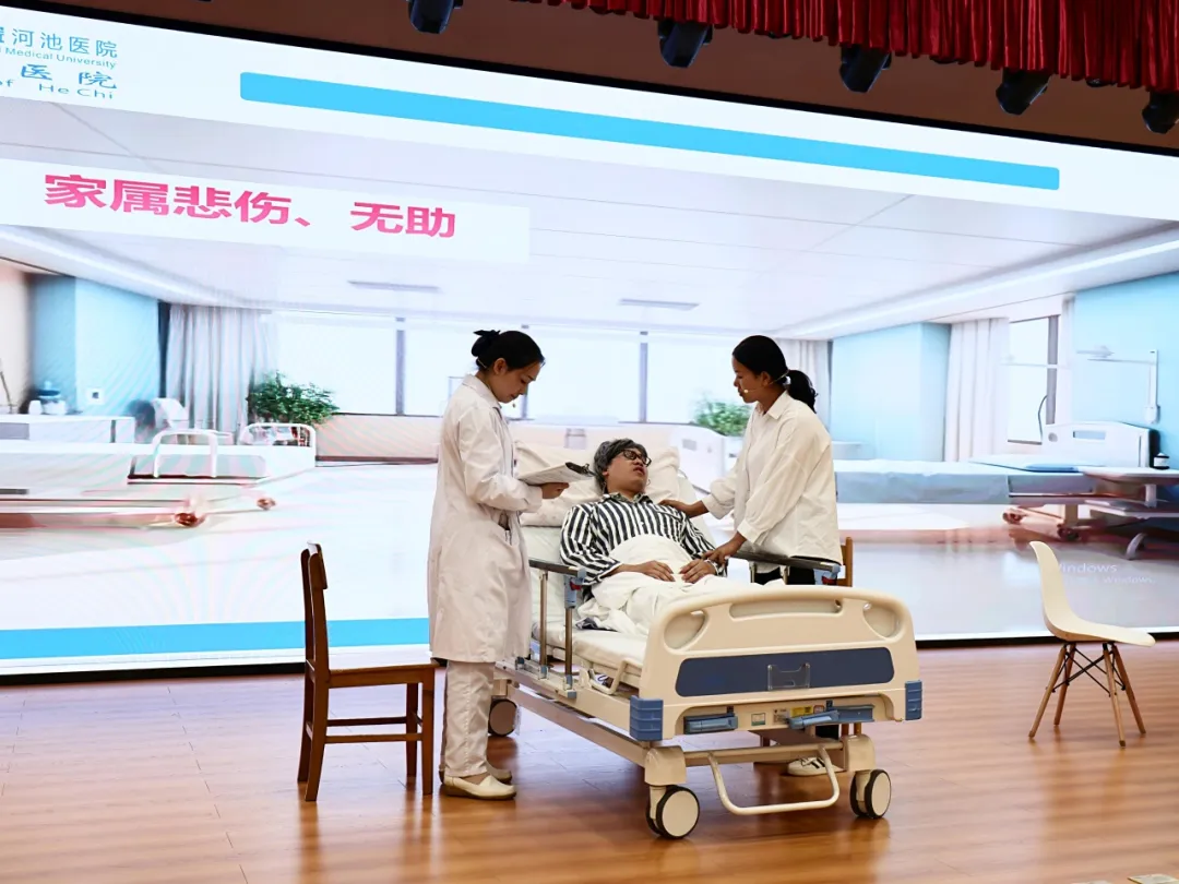 当逝去无可避免时,专业的引导能让告别成为治愈创伤的良药。本次工作坊突破传统培训模式,通过病房环境实景还原等形式,打造沉浸式培训场景,诠释了“医疗不仅要延长生命长度,更要守护生命尊严”的理念。“安宁疗护,让患者有尊严,让生者无遗憾”,这既是医者对生命的至高敬畏,更是河池市人民医院践行人文医疗的郑重承诺。