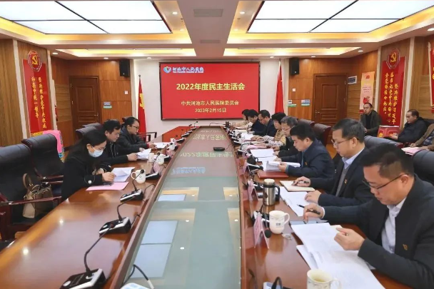 2月15日,河池市人民医院召开2022年度民主生活会。市卫健委党组成员、市纪委监委驻市卫健委纪检组组长温建平,市纪委监委驻市卫健委纪检组副组长覃军,市卫健委党务办副主任黄玉琼一行3人到会指导,医院领导班子成员、党委委员、纪委委员、各党支部委员参会。