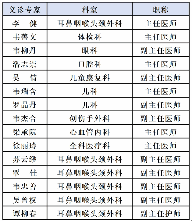 1.免费听力咨询、电耳镜检查,包括中耳炎、耳鸣、耳聋、眩晕咨询与初步诊断。