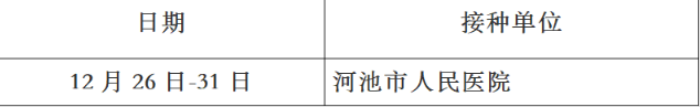 根据河池市金城江区新冠病毒疫苗接种工作专班安排,2022年12月26日至12月31日新冠疫苗接种安排如下,请各位民众根据需求选择新冠疫苗接种点接种。