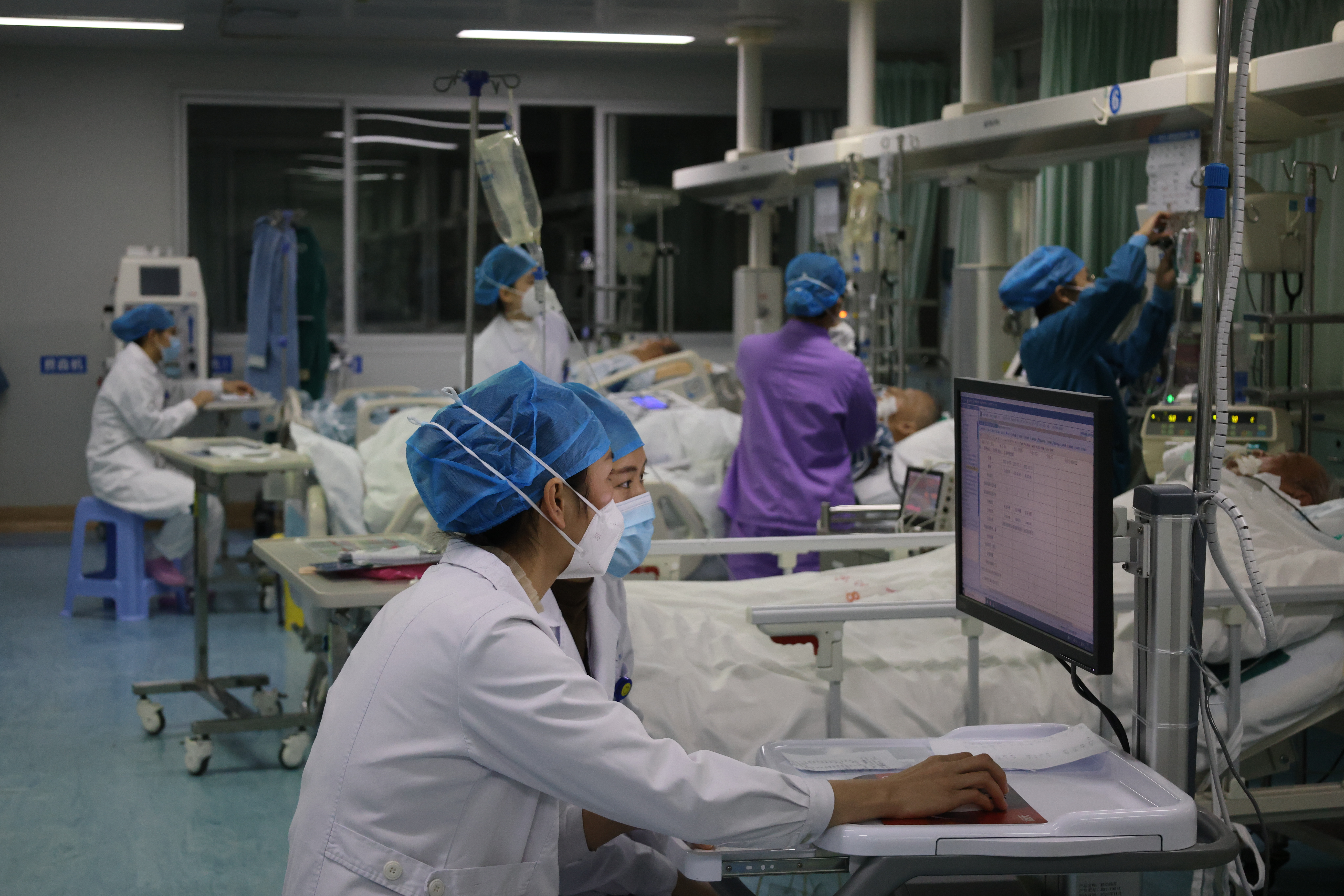 在重症病人蜂拥而至、床位爆满的情况下,重症医学科团队迅速调整人员、设备,阳性、阴性病人分开区域,分别救治。在本来就繁重的救治工作中,还要积极抢救危重新冠阳性患者,看着病人的痛苦,医务人员也都感同身受。随着疫情的发展,ICU医护人员也相继出现了感染,接二连三地出现不适,高热、头晕头疼、呕吐、喉咙痛等症状,但很多“战友”带病奔跑在抢救患者的第一线。“我们必须坚守在生命的最后一条防线上,不畏艰难,坚守阵地,全力以赴收治、抢救危重患者。”重症医学科主任刘涉泱这样表示。