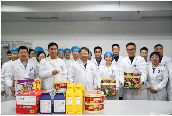 1月18日上午,市卫健委党组成员、医院院长唐秀革和党委书记韦义甜率领导班子成员和行政职能科室负责人,对坚守在岗的职工、公安民警、消防战士、武警官兵、120急救中心分别进行了春节前慰问,为他们送去慰问品及新春祝福。