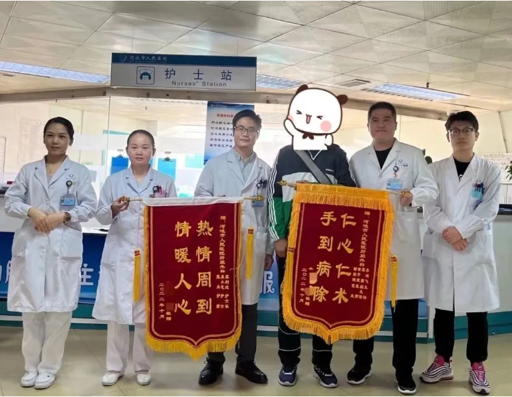 韦先生在行术后两次预防性介入后顺利出院,患者在康复出院之际,大喜过望,对肝胆外科的医护人员表达了由衷的感谢。