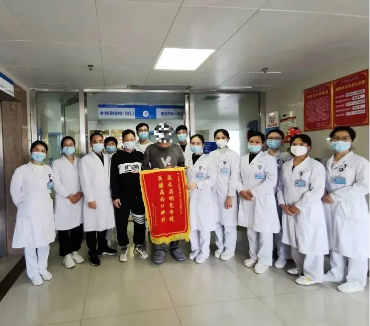 术后7小时,患者意识逐渐清醒。术后14小时,卢先生意识完全清醒,四肢活动自如,精神尚可!术后21小时,患者开口说话,语言也越来越清晰。“心情真的很复杂,没想到今天还能醒过来,而且手脚能自由活动,感谢韦主任给了我第二次生命”卢先生说。
