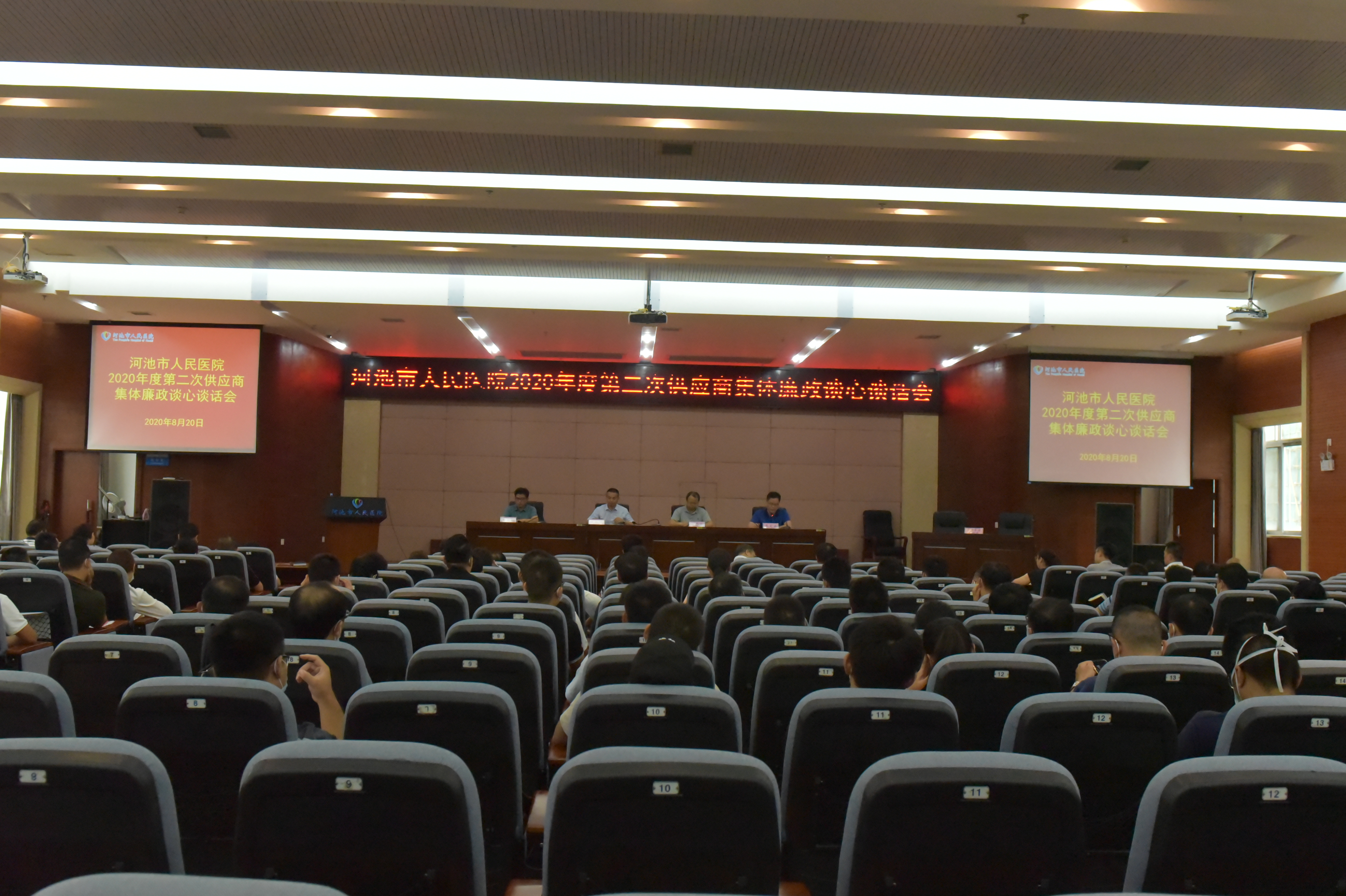 近日,我院召开2020年第二次供应商集体廉政谈心谈话会。市纪委监察委驻卫生健康委纪检组组长欧红明同志出席会议。