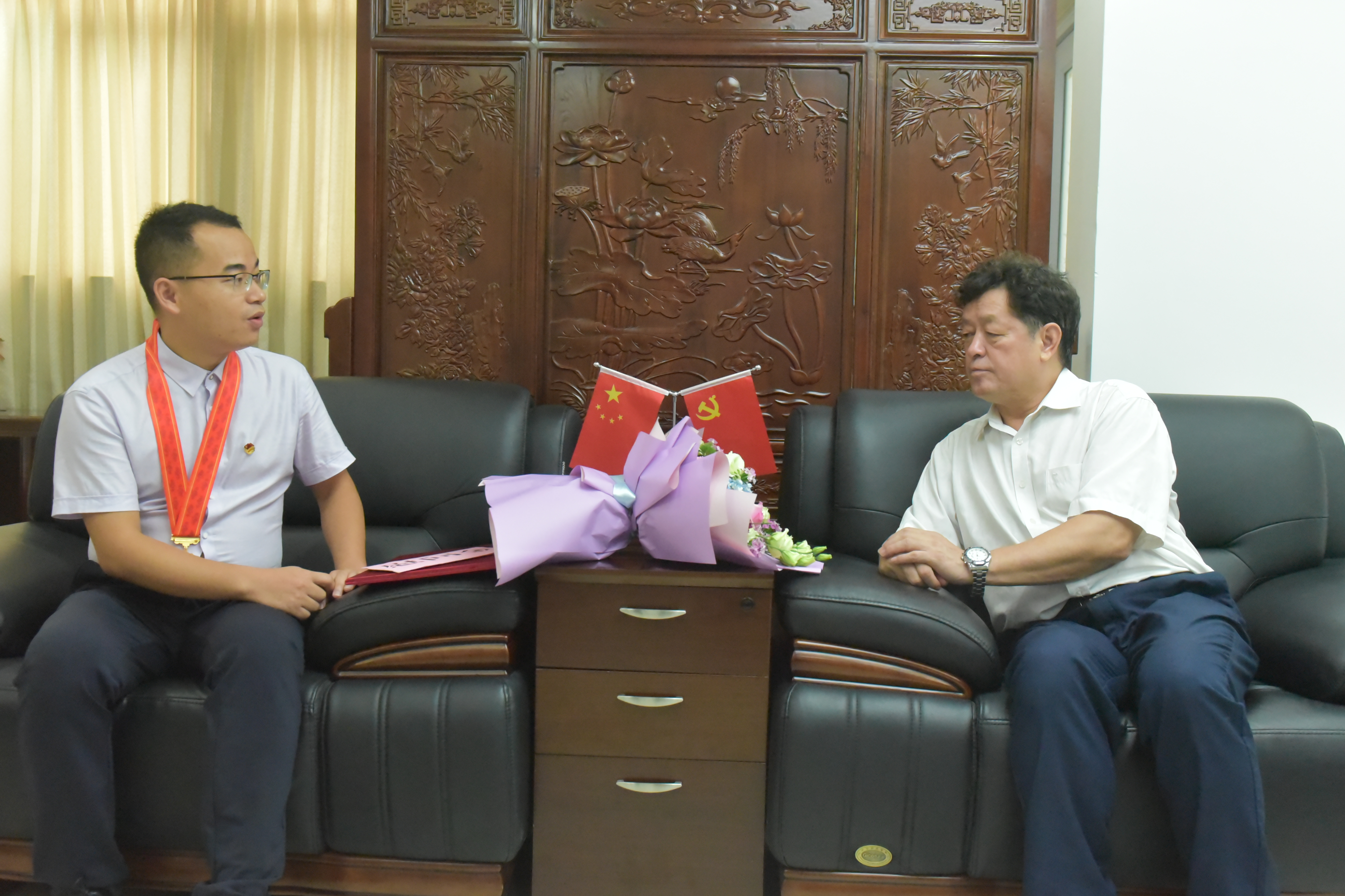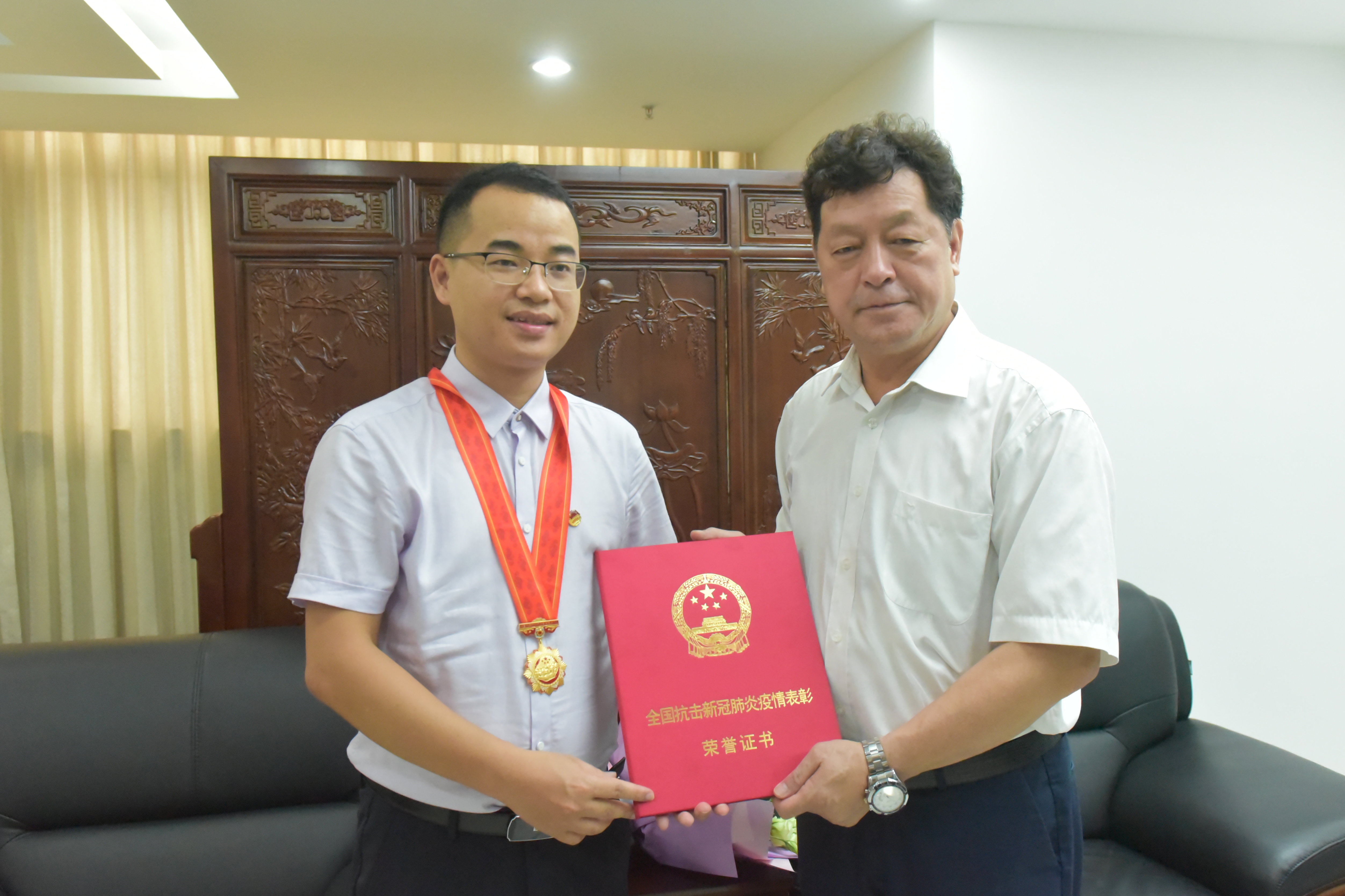 2020年9月10日,我院呼吸与危重症医学科总住院医师兰祖从北京接受“全国抗击新冠肺炎疫情先进个人”表彰归来,河池市人民政府韦祖林副市长到我院会见兰祖同志。