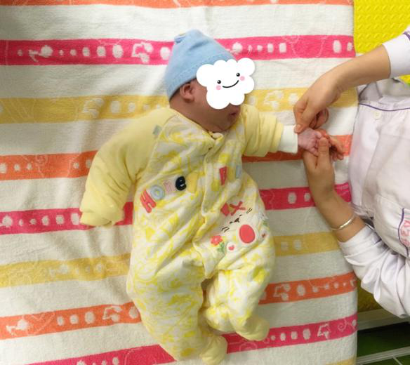 2020年4月16日,陆女士的儿子被送入我院儿童康复治疗科,三个月大的患儿诊断存在缺氧缺血性脑病,经儿童康复科治疗师认真评估分析后,患儿存在轻微的触觉敏感、肢体障碍、ATNR阳性以及角弓反张,存在异常姿势:上肢肌张力2级,上肢屈曲内收内旋,前臂旋前,腕关节掌曲,拇指内扣。这些问题会限制患儿的抓握及上肢手功能活动,长此发展会影响患儿的健康发育,甚至造成肢体偏瘫。