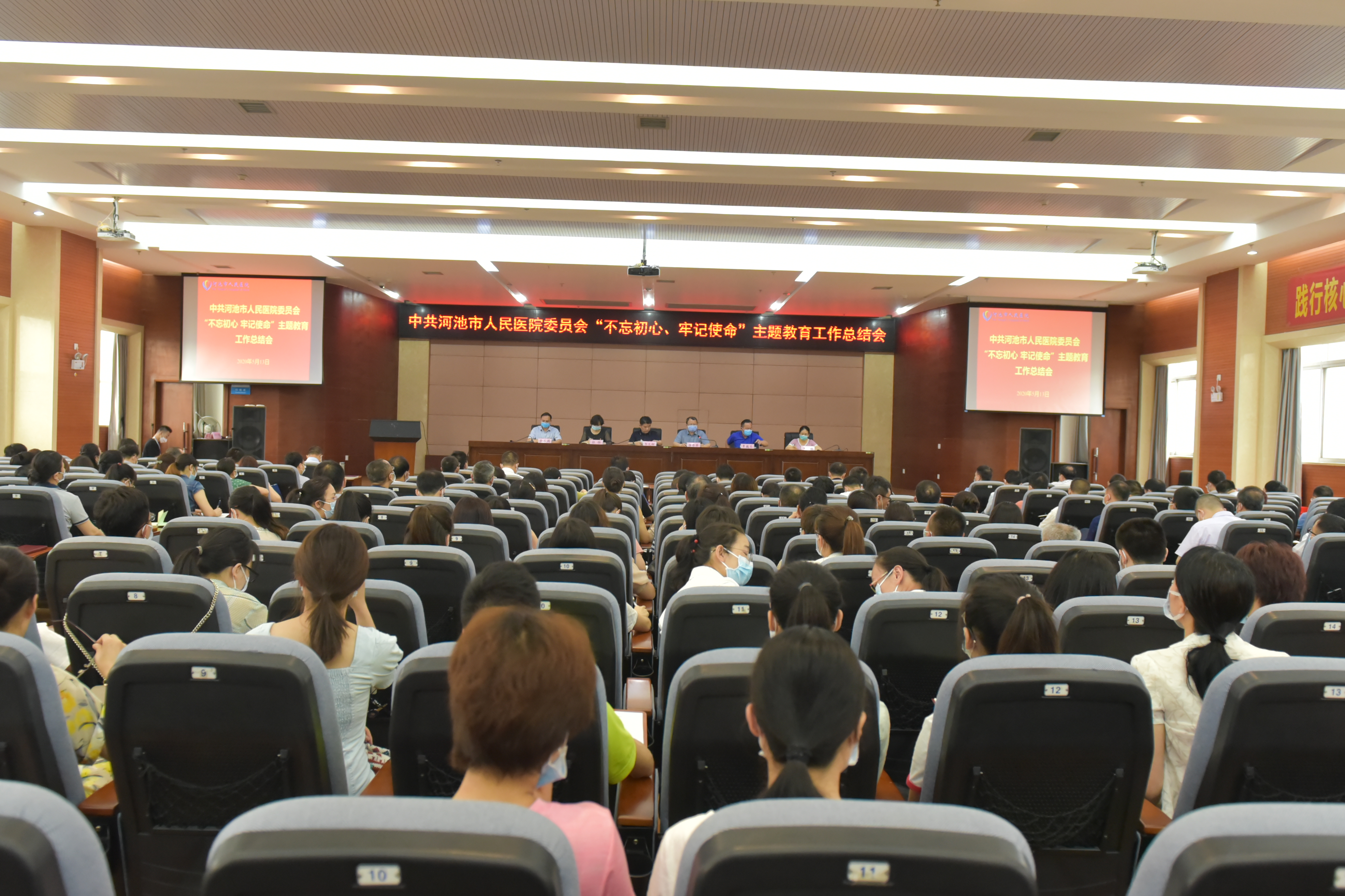 2020年5月13日,我院在门诊综合大楼23楼学术报告厅召开“不忘初心 牢记使命”主题教育工作总结会,全院中层以上领导干部、各党支部党员代表共300余人参加了会议。市卫健委党务办覃巍乐主任出席了会议。