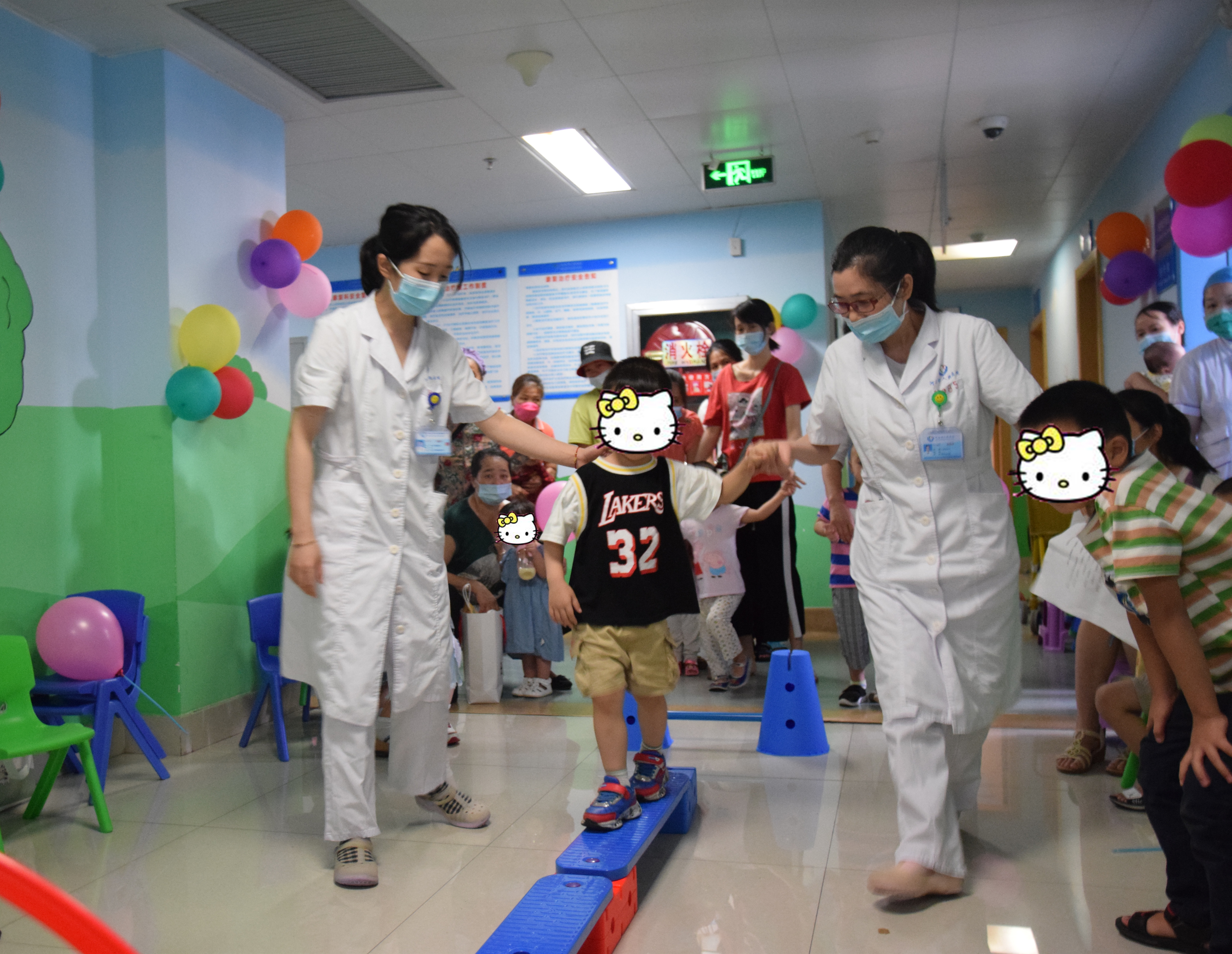 在儿童康复科,韦义甜书记、韦喆副院长以及相关科室负责人给小朋友们送上暖心的祝福语,祝福他们健康快乐,茁壮成长。韦义甜书记和小朋友一起切了节日蛋糕,并为孩子们发放精美的“六一”礼物,孩子们的脸上洋溢着幸福快乐的笑容。儿童康复治疗师们精心设计了一系列温馨的亲子互动游戏,游戏现场充满欢声笑语。虽然孩子语言表达能力和肢体运动能力有限,但他们都积极参与到游戏里,完成了一个又一个挑战,树立了坚强的生活信心。