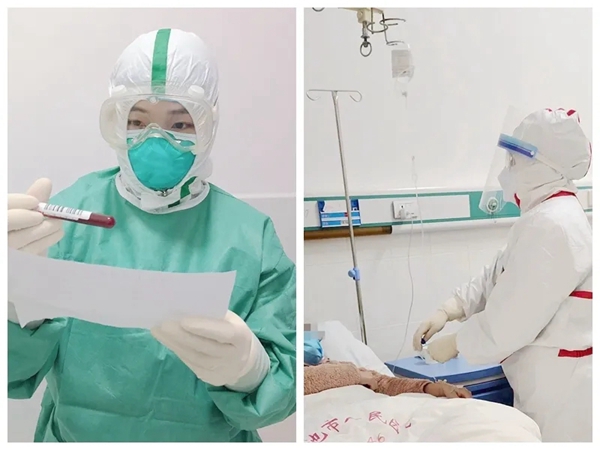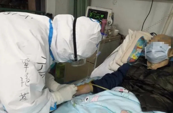 武汉市中心医院后湖院区隔离病房里,覃艳芬护士已融入紧张的工作中