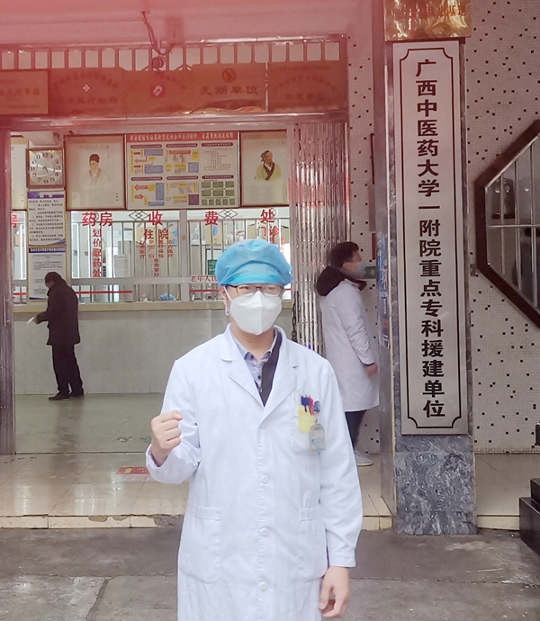 作为党员,他始终践行模范带头作用。当支援令下,他忘记夜班的疲惫,来不及休息,来不及告别家人,立即背起行囊,便投身支援都安抗疫队伍。他说:“其他同事有的孩子小,有的刚新婚,去支援都安,我是最合适的人选。”现在,他每天穿梭于病房,细心查看每一个病人,不忘提醒身边同事做好防护。当发现病房一位病人有发热现象,他第一时间指导护士将病人单间隔离,完善消毒防护措施。每天下班之前,他总不忘反复叮嘱护士,重点观察的病人和病情观察要点。
