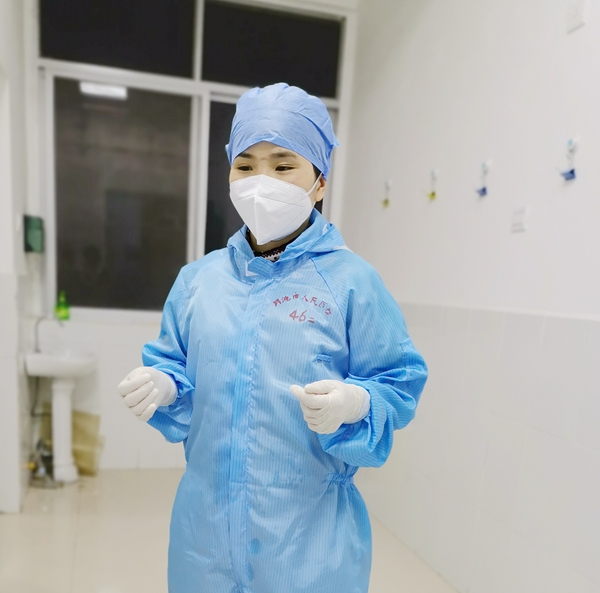 自疫情暴发以来,她第一时间报名要求参与支援。医院传染科二病区开诊后,她成为第一批支援队员。将年幼的女儿交给母亲送回老家,她便开始了抗击疫情的工作。传染科二病区主要收治发热隔离观察的病人,由于切断了与外界的接触,病人情绪波动大,需要医护人员给与更多的耐心。韩苗说现在的工作,每个环节都不能懈怠,需要更加小心、仔细,因为不仅要保护好自己,更要帮助患者康复,安抚患者情绪,做好患者的“防护服”。