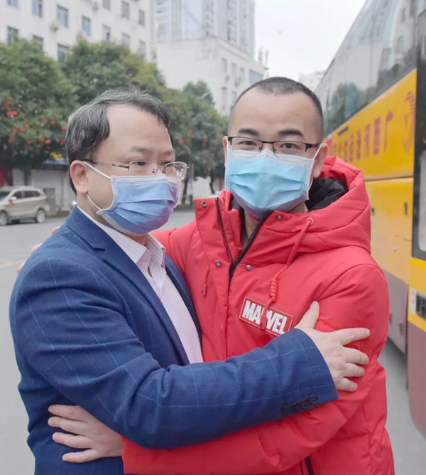 唐秀革院长(左一)的拥抱,是给队员兰祖最大的鼓励!