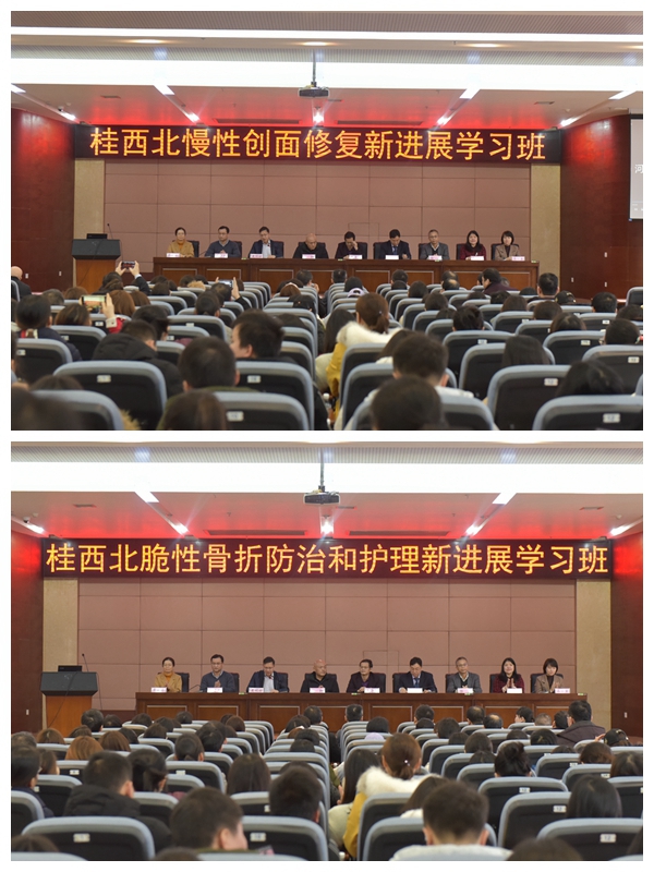 1月11日,桂西北慢性创面修复新进展、脆性骨折防治和护理新进展学习班在河池市人民医院召开,来自桂西北多家医疗机构的三百余位医务工作者参加了本次学习。