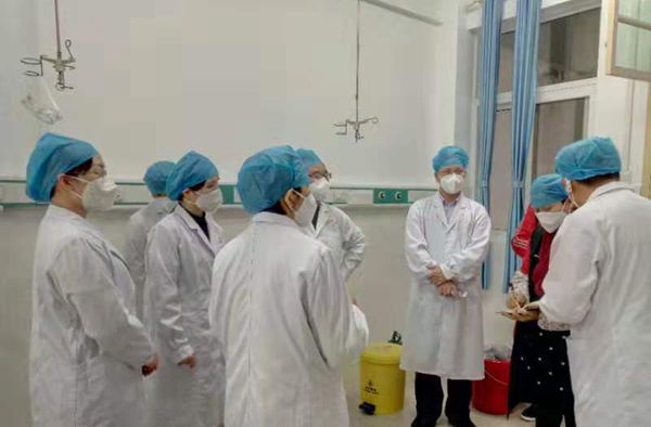 1月24日除夕夜,黄明棣副院长带领医务科、护理部、院感科、总务科等部分职能科室负责人来到呼吸与危重症医学科二病区(传染科)进行督导。黄明棣副院长一行针对发热病人接诊救治流程及通道,医护人员值班、防护知识培训等情况进行现场巡查。