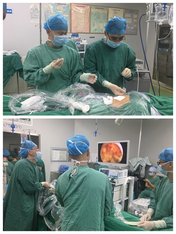 近日,我院普通外科在麻醉科、手术室和超声科的密切配合下,由李鸿飞主任医师带领的团队,顺利完成一例经皮经肝硬质胆道镜碎石取石术(PTCSL)。这种PTCSL手术在广西、乃至全国仅有少数医院开展,标志着我院肝胆管结石病的微创治疗技术跨入广西先进行列。