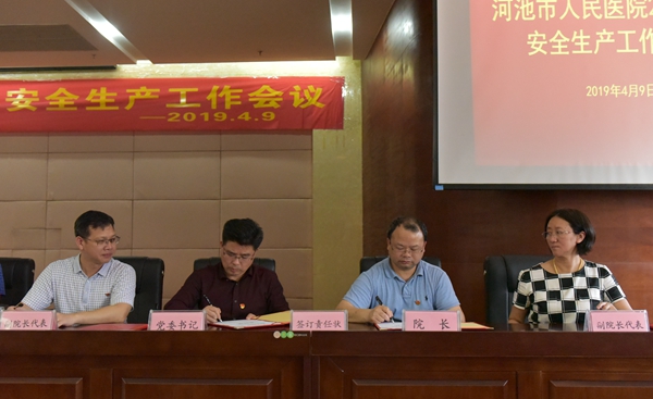 4月9日下午,2019年安全生产工作会议在我院门诊综合楼23楼多功能厅召开,会议由韦仁杰副院长主持,院领导班子、中层干部及医院职工代表参加会议。