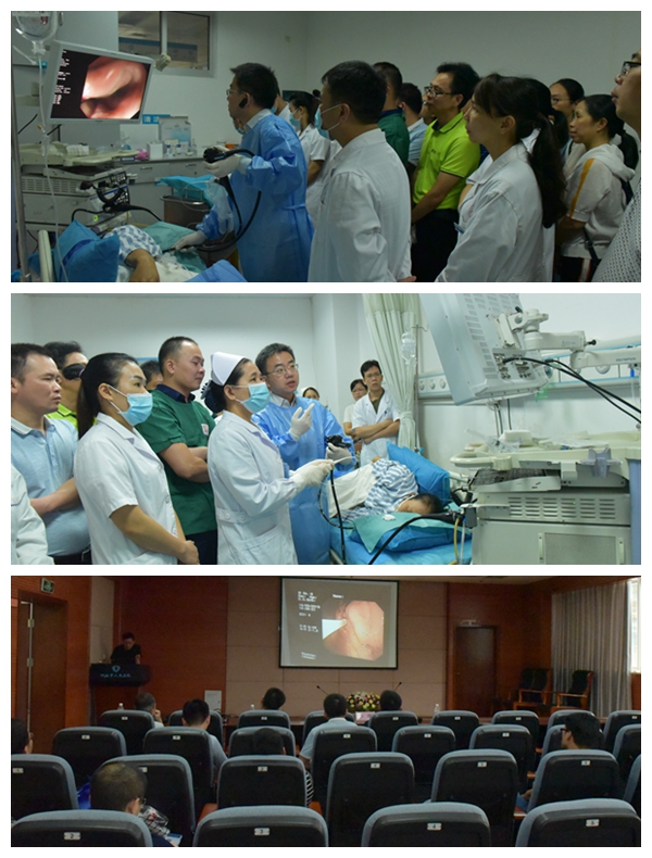 首先由复旦大学附属中山医院李锋教授、广西医科大学第二附属医院黄杰安教授分别就《食管胃静脉曲张规范化诊治》、《食管胃静脉曲张内镜诊治经验分享》作精彩授课,专家们深入浅出、图文并茂的授课方式,让学员们听得津津有味。接着,李锋教授及黄杰安教授在门诊综合楼5楼内镜中心进行手术操作演示,对学员们进行手把手教学;在示教过程中,专家们边操作边解说,对疑难的地方会重点提醒,学员们纷纷表示专家的操作示教简明易懂、受益匪浅。最后,大家再次在会议室集聚,专家们就学员们提出的问题进行一一解说。