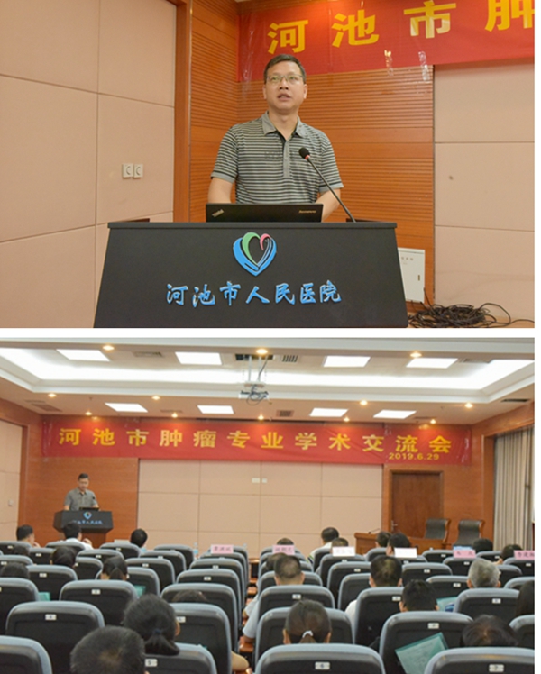 近日,河池市肿瘤专业学术交流会在我院召开。大会邀请到上海交通大学附属瑞金医院的蔡嵘教授、广西壮族自治区人民医院刘智勇教授莅临我院进行专题授课,全市各医疗机构共150余人参加了本次交流会。