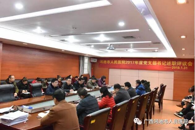 在认真听取报告后,韦义甜书记依次对各党支部书记的述职作出点评,要求各支部书记要重视基层党组织建设,进一步增强政治意识,不断提升党员的理论素养,发挥党员的先锋模范作用,发挥党支部的战斗堡垒作用,紧密结合医院工作实际,用扎实的工作和昂扬的姿态学习宣传贯彻党的十九大精神,以实际行动推动医院党组织建设和内涵发展。随后,与会人员对各支部书记一年来的工作进行民主测评。