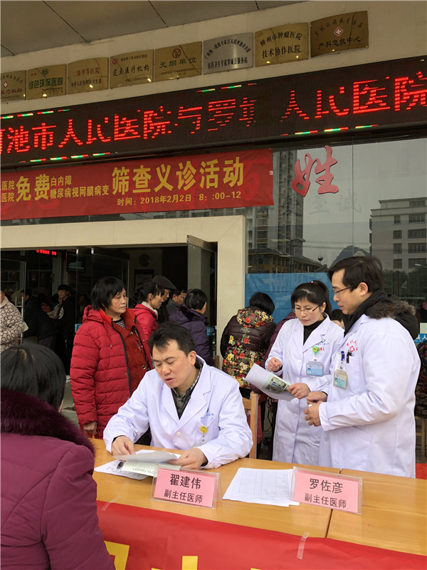 近日,我院眼科在科主任翟建伟副主任医师的带领下,一行5人前往罗城县人民医院,开展眼科手术及义诊活动,并为当地的老年人进行免费的白内障及糖尿病视网膜病变筛查,受到当地百姓一致好评。