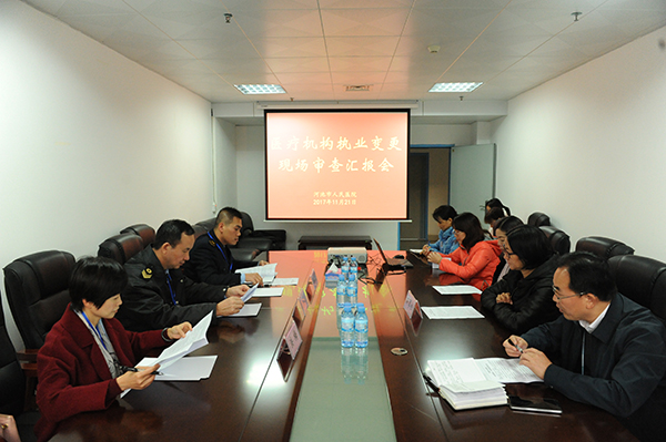 11月21日,自治区卫生监督所赵益生带领的医疗机构执业变更审查组一行3人到我院就“增设儿童保健科病房、增加牙椅数”进行现场审查,我院副院长蒋军松、医务科科长蒙如庆、副科长黎春萌,护理部主任莫喜萍,院感科副科长黄凤荣,儿童康复科主任吴倩等部门负责人出席汇报会,并陪同检查。