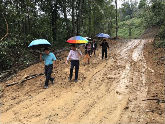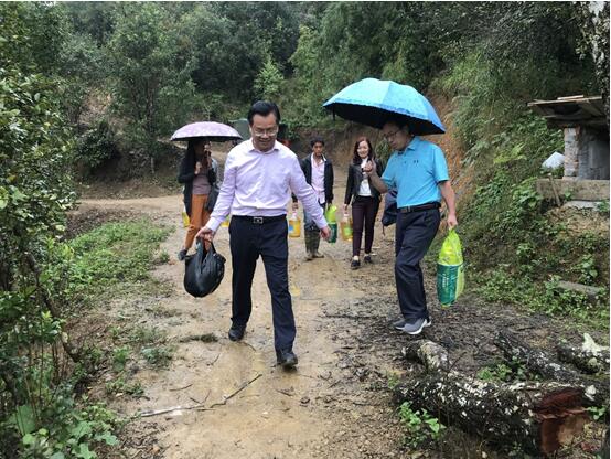 在驱车前往扶贫点的路上, 恰逢冷空气南下,寒风细雨,道路泞泥,山体滑坡、泥石流等地质灾害不断。尽管环境恶劣,但并没有阻止扶贫干部前进的脚步。大家先后来到贫困户家中,耐心宣传党和政府的扶贫政策,仔细了解贫困的群众的生活生产情况,并给他们送去大米、食用油等物资,鼓励贫困群众坚定信心、克服困难,共同实现脱贫目标。