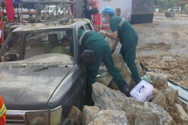 按照工作预案,演练开始,我院急诊科医务人员接到救援任务后,带上充足的急救药品,一路向大化出发。到达现场后,急诊救援人员立即投入救援工作,从了解现场情况、明确救援任务、商讨救援方案、到实施救援行动,一切都在紧锣密鼓地进行着。最后,根据先重后轻、现场抢救的原则,首先对伤员伤情进行初步判断,然后实施现场处置,伤检分类,迅速有序地处理伤员,最后将伤员搬运上救护车运送到附近医院进一步救治。