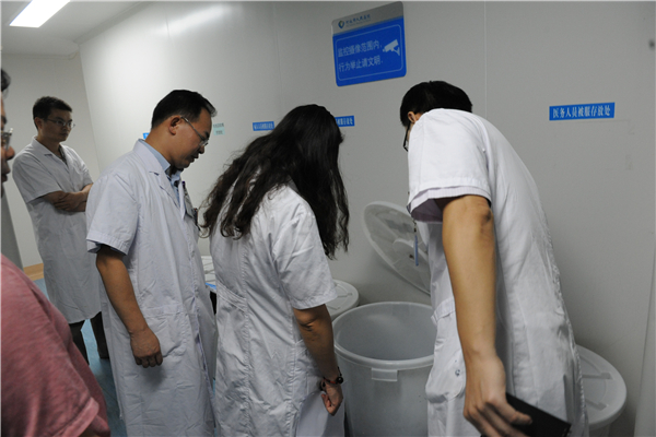 为满足肾病患者的治疗需求,改善就医环境,我院拟扩建血液透析室,将血液净化治疗设备由29台扩大至36台。7月20日上午,自治区卫计委委托右江民族医学院附属医院肾内科王洁主任一行3人,到我院就血液透析室扩大申请进行现场评估。唐秀革副院长,肾内科、质控科、护理部、医械科、院感科等部门负责人陪同评估检查。