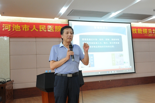 培训会上,刘教授就如何理解管理、医疗服务的特点、科主任、护士长如何做好科室管理工作等方面进行深入的阐述,刘教授的讲课妙趣横生、实战性强,对进一步深化医院内涵建设、提升医院管理水平具有积极的推动作用。