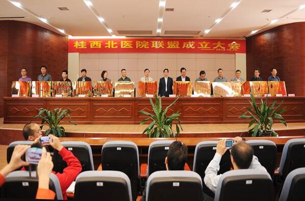 桂西北医院联盟是由我院倡导,全市多家医院响应的松散型医疗联合体,当前共有医疗单位14家,除我院以外,还包括市第三人民医院,也有南丹、东兰、天峨、都安、环江、凤山等6个县级人民医院,以及宜州、南丹、东兰3个县级中医院与德胜、洛阳、下坳3个乡镇中心卫生院。院长梁涛在成立大会上说,“随着公立医院改革的不断深入,医疗集团建设越来越受到各界的关注,建立医疗服务体系内部上下联动的分工协作机制,发展构筑以区域性医疗集团为基础的新型医疗服务体系,成为提高区域医疗服务能力,提升公立医院改革思想纵深发展的重要举措。”成立联盟,旨在通过实现联盟内的网络互联、信息互通、检查互认、人才互动和资源共享,“为保障全市人民群众健康和生命安全做出新的更大的贡献!”