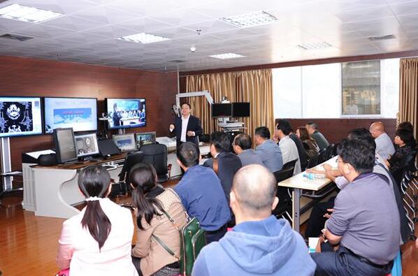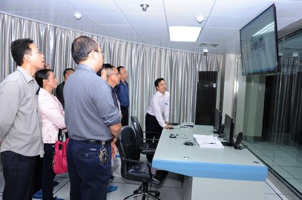 工作人员在向来宾介绍我院中心机房