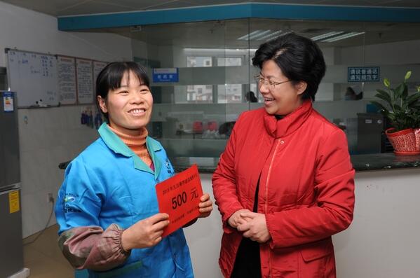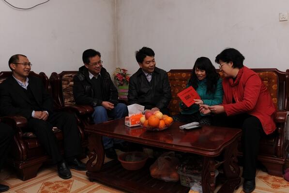 1月25日上午,市委常委、宣传部部长、副市长黎丽在市总工会、市卫生局领导的陪同下,到我院慰问困难职工,向他们致以新春的问候和美好的祝愿。