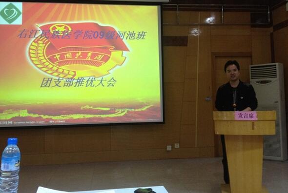 据悉,2009级河池班由原2009级临床本科7—10班中抽选出37名同学组成,是继往年五届来第六届由学校从临床学院中选派到附属河池医院进行临床理论与实践技能学习的班级。基于附属河池医院新大楼建成使用及各种新医疗设备的引进,09级河池班将是在07及08两年河池班空缺后的全新班级,是我校在附属河池医院临床教学的新的里程碑。此次大会是09级河池班支部建制以来的第一次推优大会,也是历届河池班在离开学校本部后的第一次推优大会,大会将对09级河池班团支部的集体凝聚力及往后学校在非直属附院的团支部建设中起到重要意义。