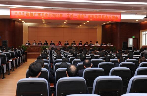11月23日,由卫生厅黎火佳处长领队的广西卫生厅2012年“三好一满意”、“抗菌药物临床应用专项整治”、“平安医院”、“优质护理”专项督查组专家一行14人,莅临我院进行2012年 “三好一满意”系列活动专项督查。
