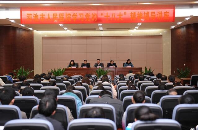 12月25日下午,我院学习党的“十八大”精神专题辅导讲座在门诊综合楼23楼多功能厅举行。此次学习活动由院党委书记陆艳姣主讲,医院全体中层干部、全体党团员共300余人参加学习活动。